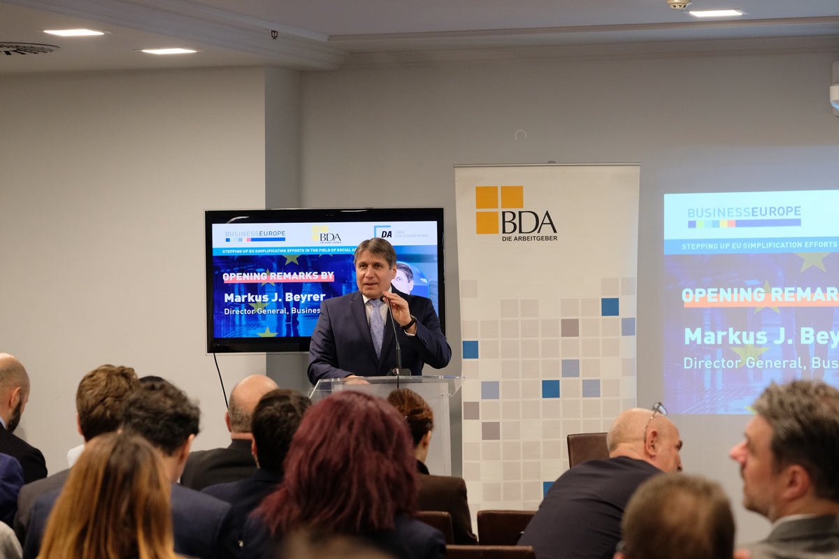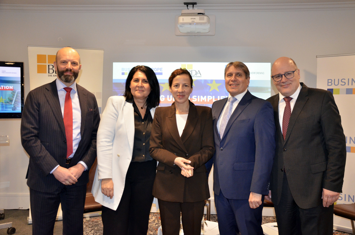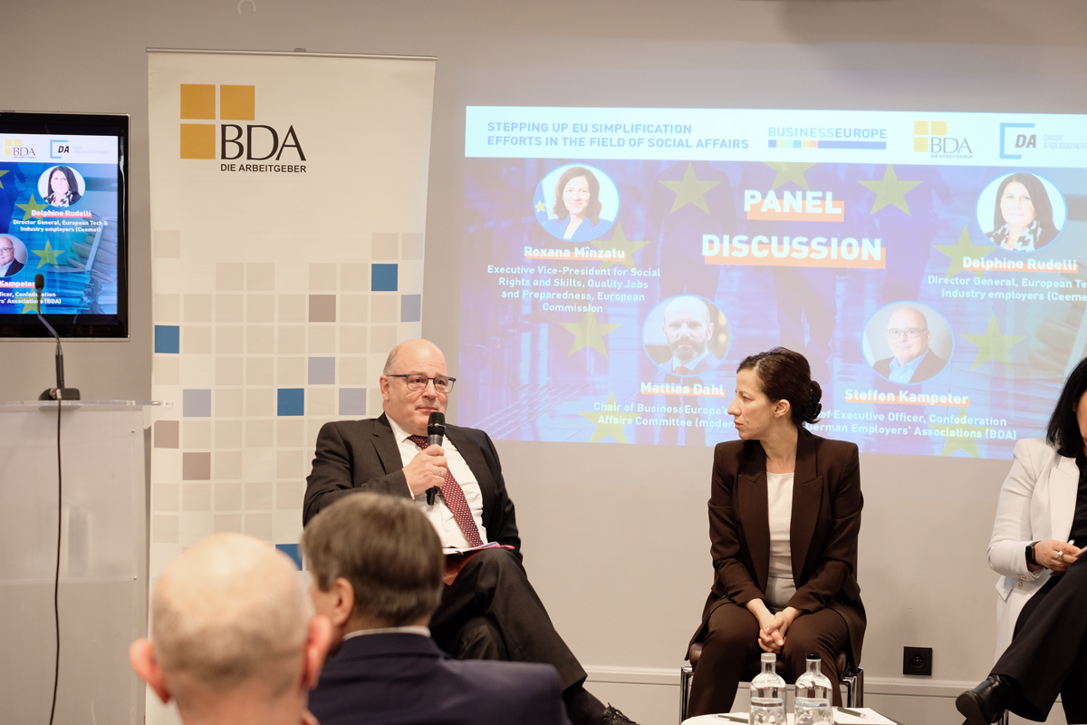 Social policyTo explore how to advance EU simplification efforts in social legislation, BusinessEurope hosted an event on 18 February in Brussels with its member federations the Confederation of German Employers' Associations (BDA) and the Confederation of Danish Employers (DA), featuring Roxana Mînzatu, Executive Vice-President of the European Commission responsible for Social Rights and Skills, Quality Jobs and Preparedness.