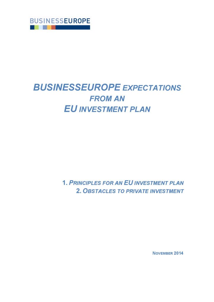 BusinessEurope expectations from an EU investment plan